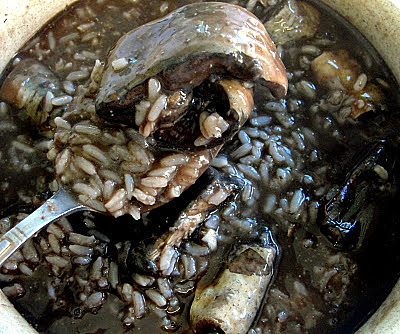 As lampreias têm mais de 280 milhões de anos. São ciclótomos de água doce com a forma de enguias, mas sem maxilas. A boca é uma ventosa circular que funciona como bomba de sucção. Uma boca com o mesmo diâmetro do corpo, reforçada por um anel de cartilagem e armada com um língua-raspadora. No topo da cabeça tem um "olho pineal" translúcido e uma única narina. Por trás abrem-se sete fendas branquiais. Não tem esqueleto mineralizado, mas uma muco-cartilagem calcificada. Tem uma vida larvar durante sete anos nos rio e depois, sabe-se lá porquê, entram em metamorfose e transformam-se em adultos. Migram para o mar e regressam dois anos depois. Regressam cheias de vontade de se reproduzir. Entram novamente nos rios onde nasceram para desovar. É neste processo que vão parar à panela. Uma iguaria requintada que se paga a preço de ouro. A época da lampreia começa em Janeiro e acaba em Abril. O arroz de lampreia é uma cabidela suculenta. Talvez um dos pratos mais fortes que já me passou pela goela. Típico de Portugal e de algumas regiões de Espanha e França. Há sempre uma primeira vez...